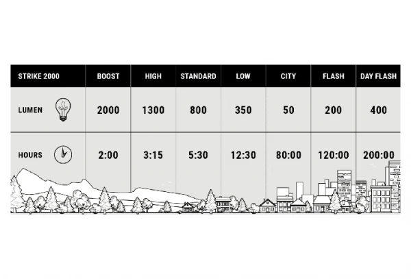 La StrikeDuo 2000 est la lumière ultime pour ne jamais rien rater en enfourchant votre vélo ! Le phare LED de 2000 lumens est extrêmement lumineux et émet un faisceau ovale dirigé vers tout ce qui se trouve sur votre route.