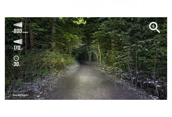 - 5 modes d’éclairage : High (800 lm) ; Mid (400 lm) ; Low (150 lm) ; Night flashing (600/200 lm) ; Day flashing (200 lm)