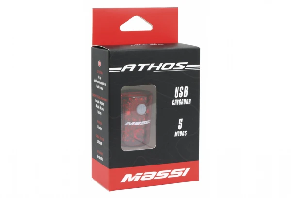 Éclairage Arrière Massi Athos 15 Lumens USB Noir.