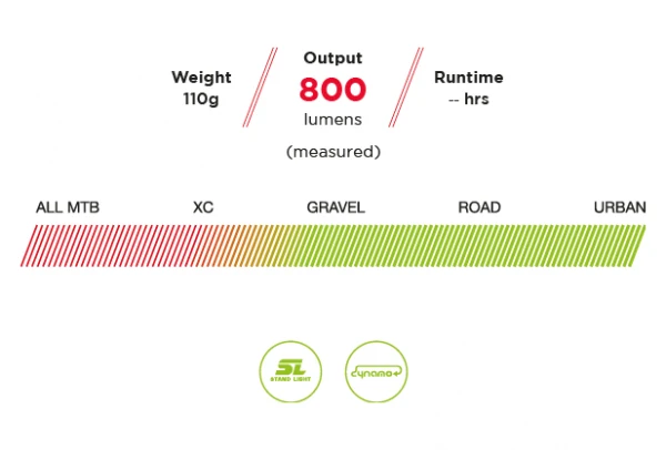 Le compagnon idéal des coureurs d’endurance et des cyclistes est la lampe REVO Dynamo à 4 LED de 800 lumens avec une lampe de secours d’une heure. La lampe sur pied permet à la lampe de rester éclairée dans la circulation ou peut être utilisée pour installer un camp. L’intensité lumineuse maximale est atteinte à une vitesse de 17 mph et l’autonomie d’une heure est atteinte après seulement 15 minutes de conduite.