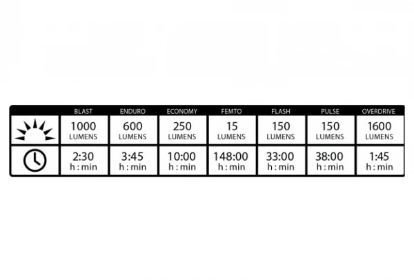 Le Super Drive 1600XXL est compatible Smart Connect et Remote Switch pour une plus grande facilité d’utilisation. Un capteur jour / nuit automatique ajuste automatiquement le flux lumineux dans les modes sélectionnés. La lampe est rechargeable par micro-USB et peut durer jusqu’à 148 heures avec une charge complète. Une sangle polyvalente le fixe à toutes les tailles de guidon courantes.