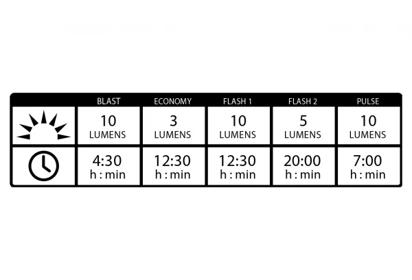 - Flux lumineux : 10 lumens.