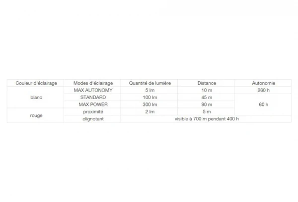 Lampe frontale compacte multifaisceau avec éclairage rouge, destinée aux activités outdoor. 300 lumens