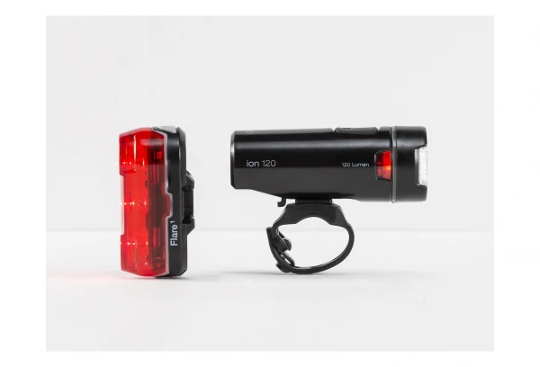 Voir et être vu. La paire d’éclairages Ion 120 et Flare 1 de Bontrager est toujours prête à vous faire briller à chaque sortie ! Ces feux avant et arrière sont simples, puissants et faciles à utiliser. Ils possèdent, en plus des modes clignotant et continu, de longue durée et se fixent aisément sur n’importe quel cintre et tube de celle grâce aux fixations incluses.
