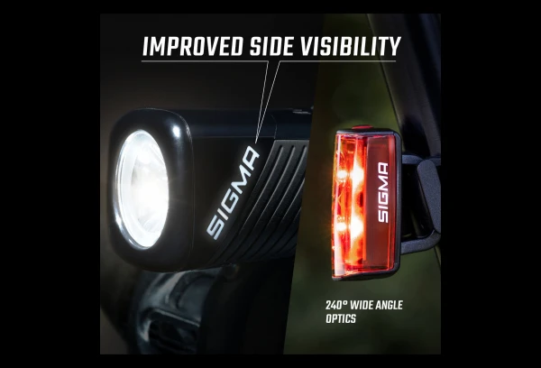 - Visibilité latérale : Le BUSTER 800 a le logo SIGMA sur les faces longitudinales. Il fonctionne comme un guide lumineux afin que les cyclistes soient plus visibles de côté. Le BUSTER RL 80 dispose d’une optique à angle large qui lui confère un éclairage à 240 degrés.